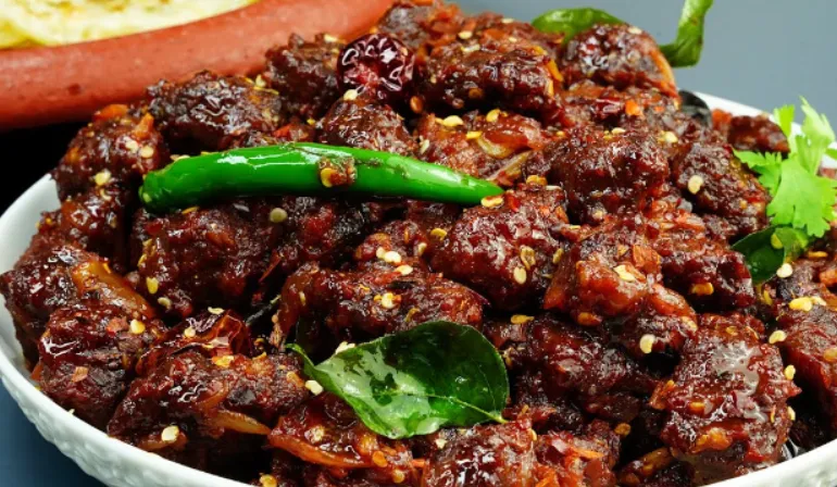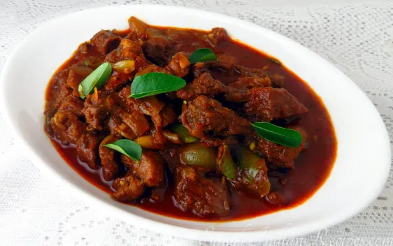 Beef cooked in a spicy pepper masala.