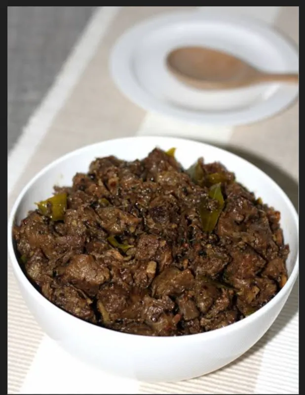 Tender beef pieces roasted with spices.