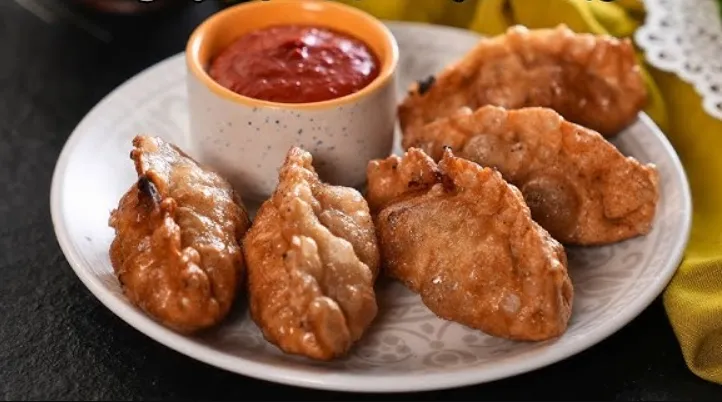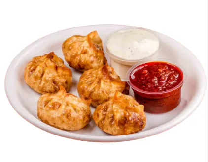 Golden fried chicken momos stuffed with juicy, spiced chicken, delivering a crispy exterior and flavorful bite every time