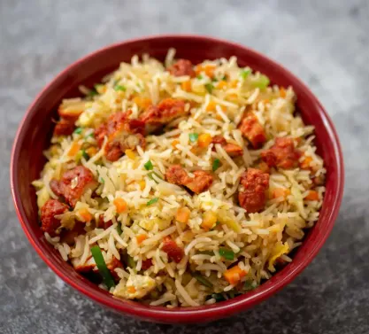 Classic fried rice with succulent chicken pieces.