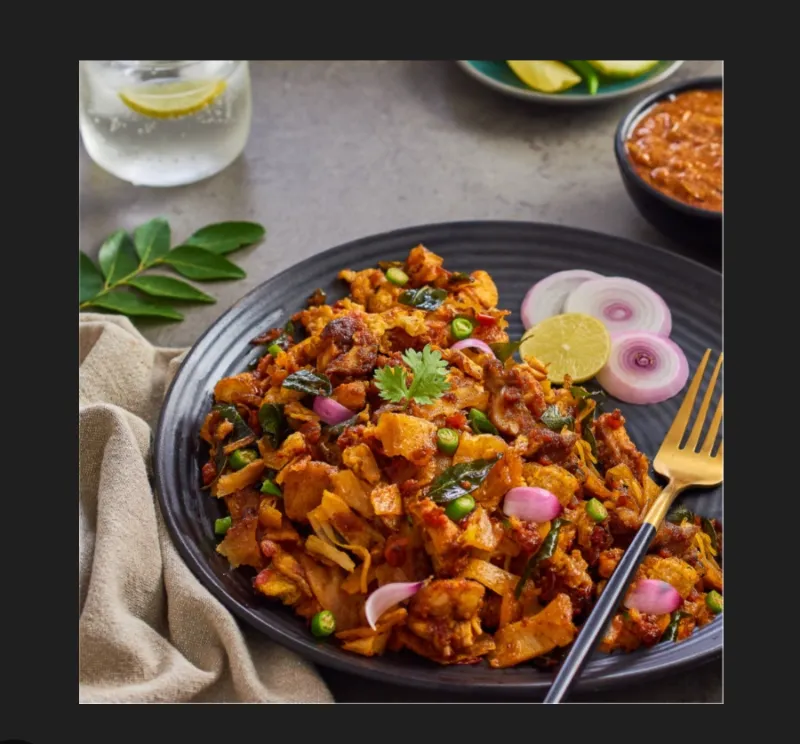 Spicy parotta stir-fried with chillies and spices.