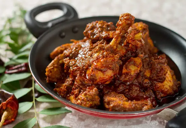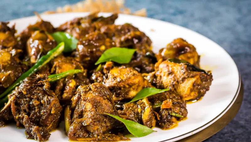 Traditional Kerala-style chicken curry.