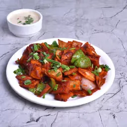 Spicy and crispy fried paneer cubes.