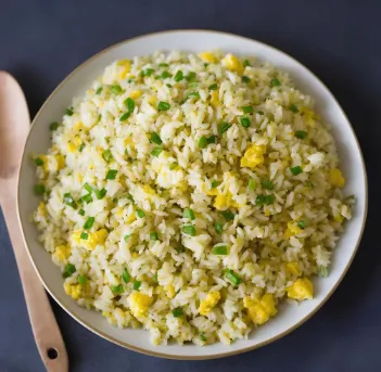 Fried rice with scrambled eggs and vegetables.
