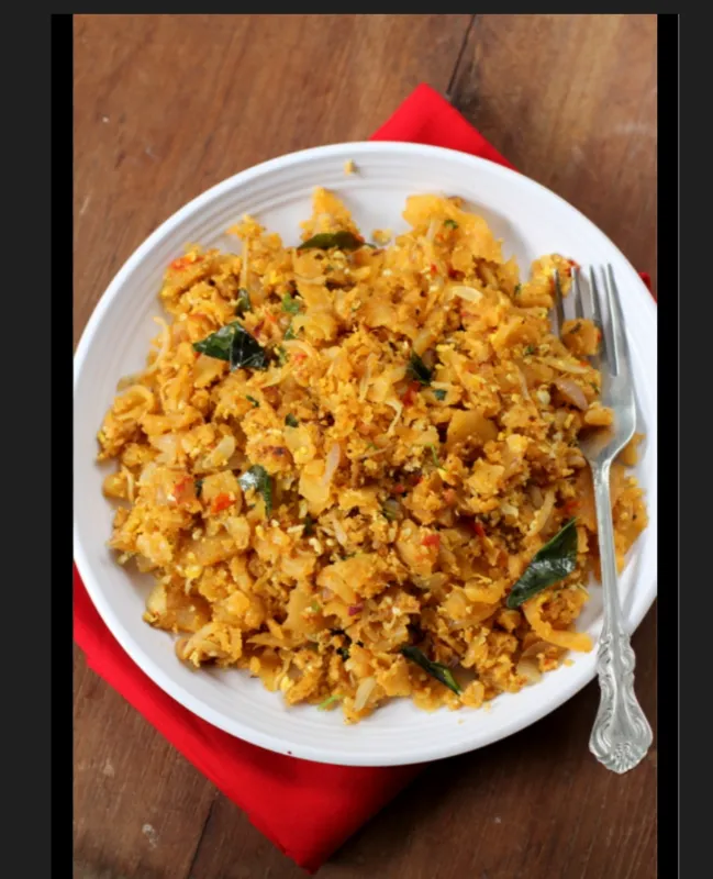 Shredded parotta stir-fried with egg and spices.