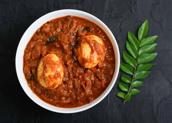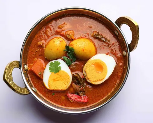 Soft boiled eggs cooked in a spicy, flavorful masala for a hearty and delicious dish.