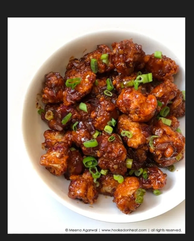 Crispy cauliflower florets in a savory sauce.