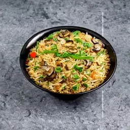 Fried rice with savory mushrooms and vegetables.