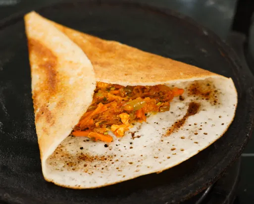 Crispy dosa filled with spiced mushrooms for a savory and delicious twist.