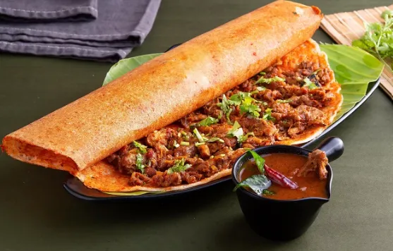 Crispy dosa stuffed with flavorful, spiced beef for a bold and satisfying bite.