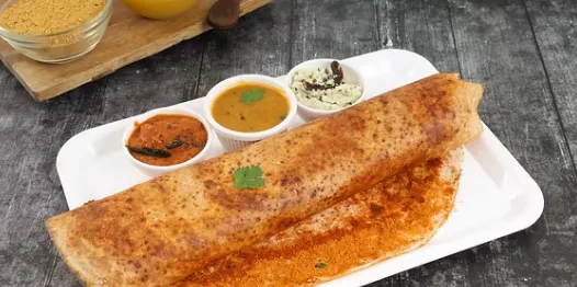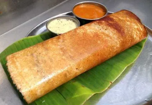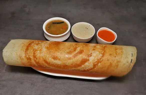 Crispy dosa cooked with ghee.