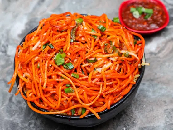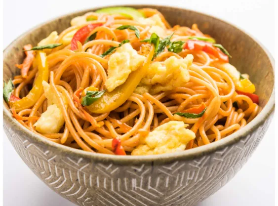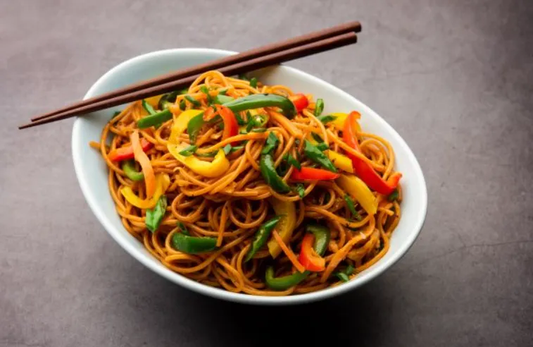 Spicy Schezwan noodles tossed with juicy chicken, crunchy vegetables, and bold chili-garlic sauce for a fiery and satisfying meal.
