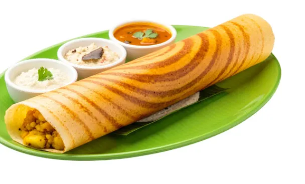 Crispy dosa filled with spiced potato mixture.