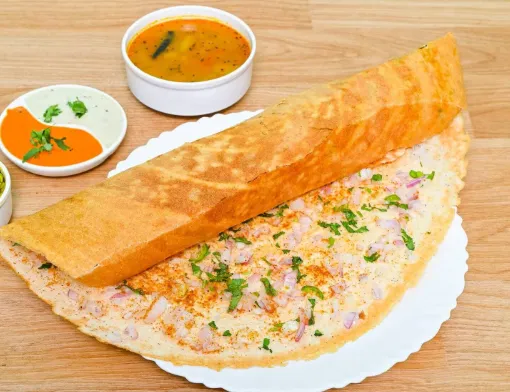 Crispy dosa topped with finely chopped onions and spices for a flavorful, crunchy bite.