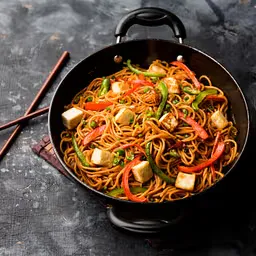 Noodles stir-fried with paneer and vegetables.