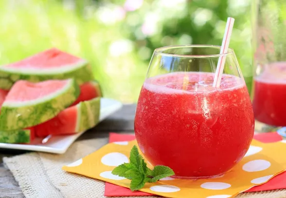 Chilled watermelon juice, naturally sweet, refreshing, and hydrating.