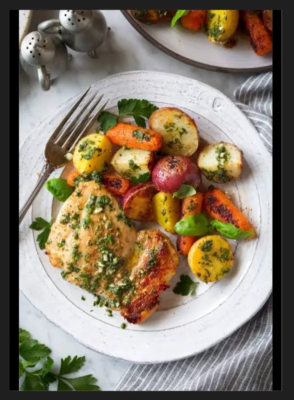 Succulent herbed chicken with fresh veggies, a lean and healthy meal.