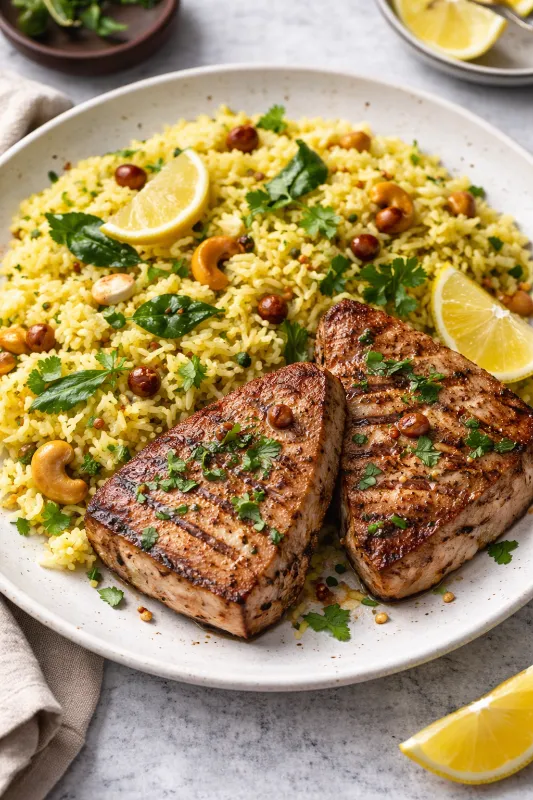 Flavorful lemon-infused rice with tuna fish , a zesty and refreshing take on a classic.