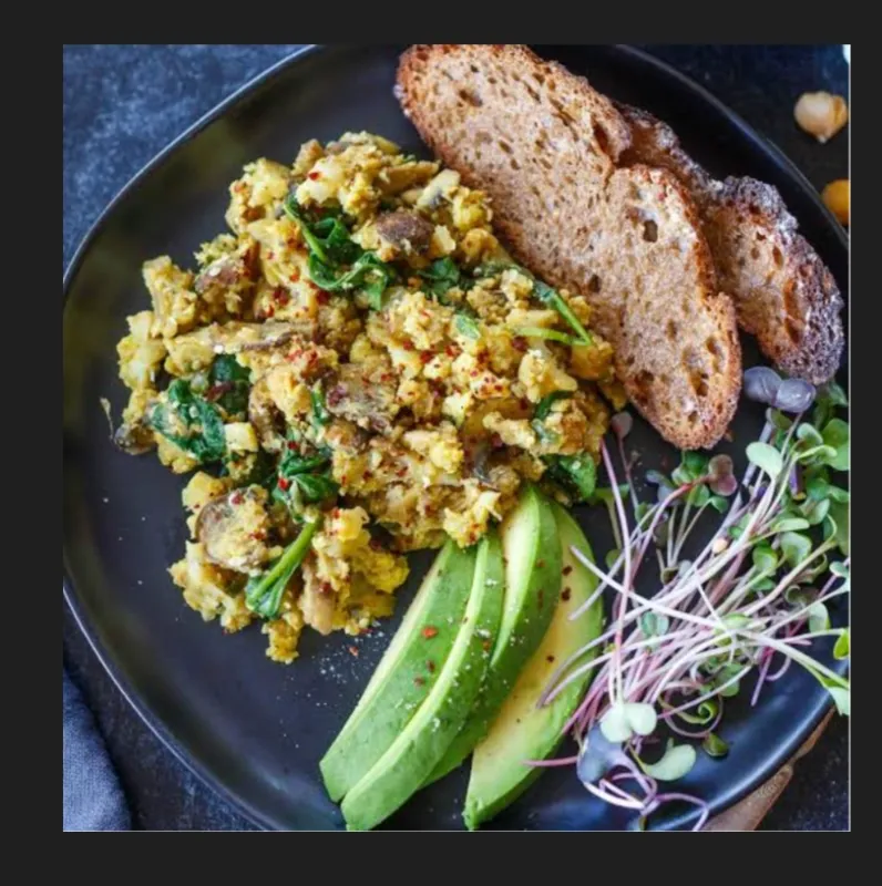 High-protein scrambled eggs paired with chickpeas, a nutritious start.