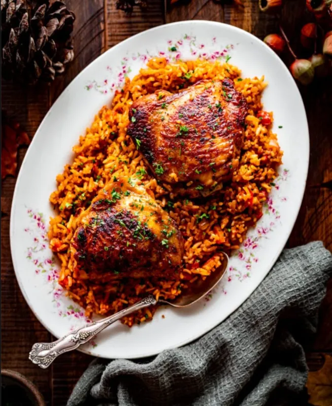 Tangy and savory tomato rice, a rich with chicken breast and comforting bowl.