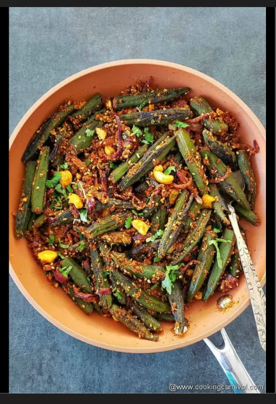 Okra stir-fried with a spicy masala.