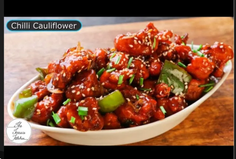 Crispy cauliflower in a spicy and tangy chilly sauce.