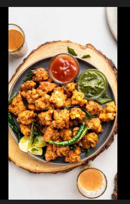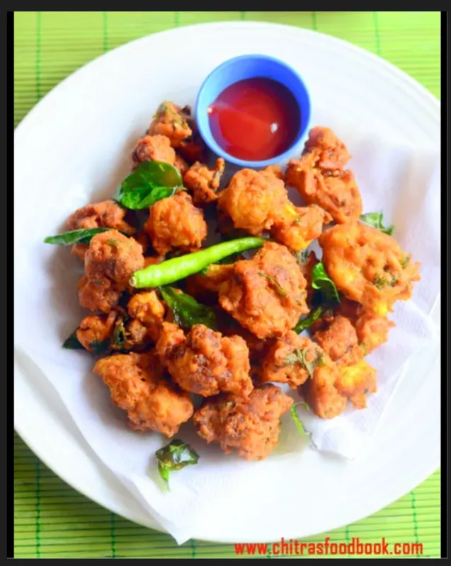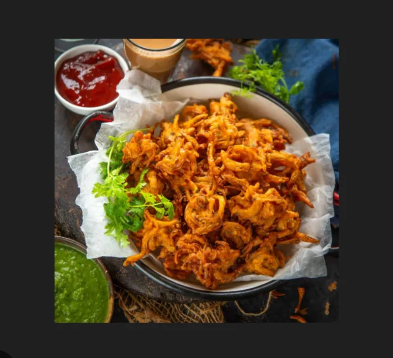 Crispy fried vegetable fritters, a classic Indian snack.
