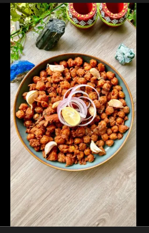 Chickpeas cooked in a spicy masala.