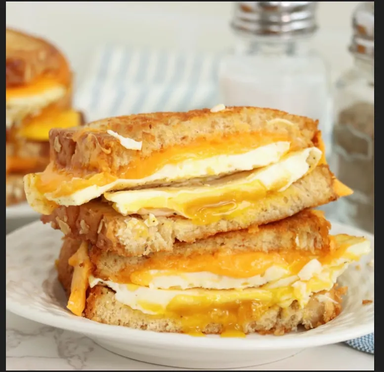 Egg and cheese nestled between soft bread slices.