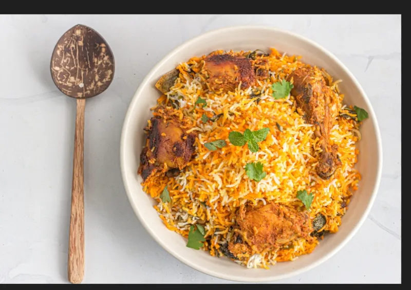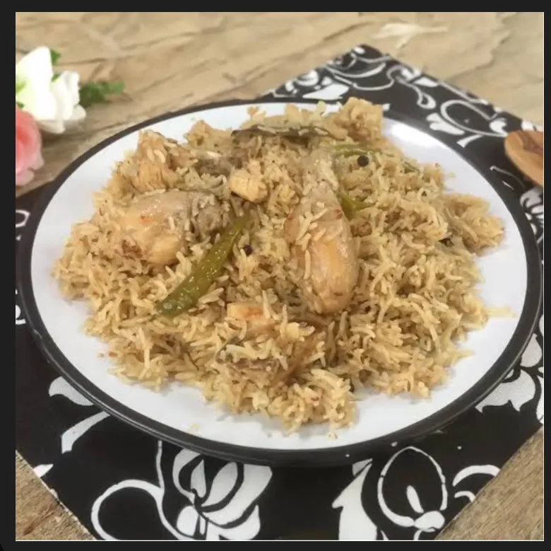 Aromatic biryani with tender chicken pieces.