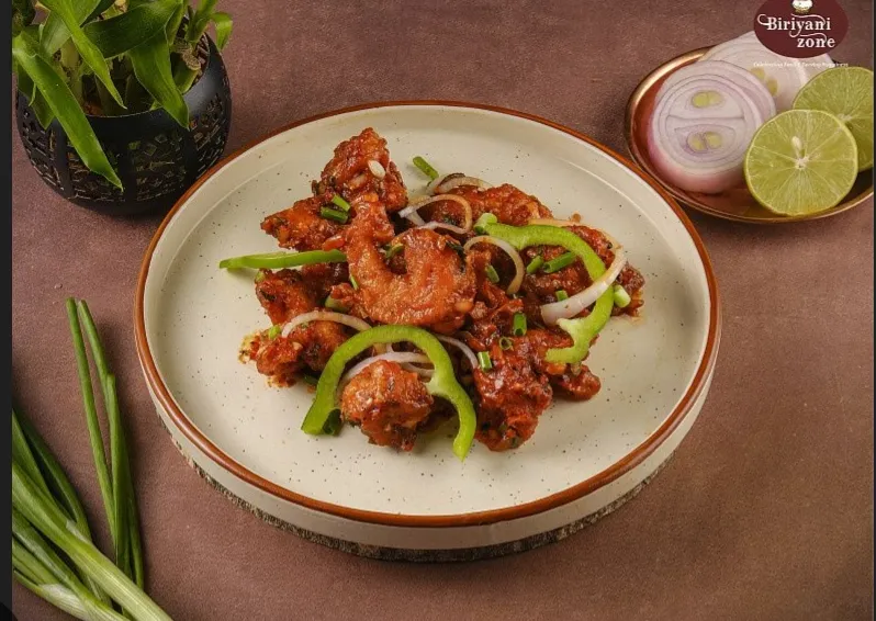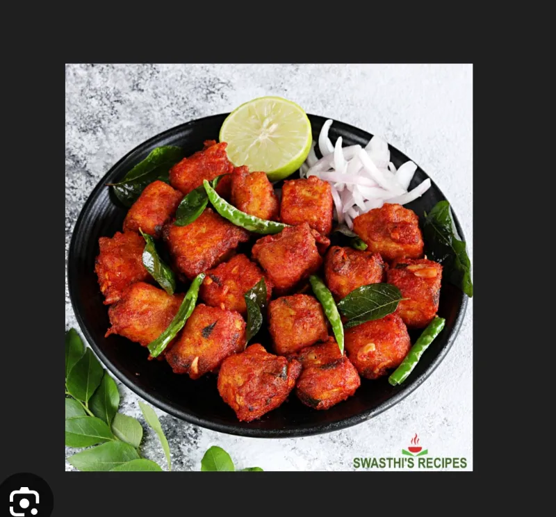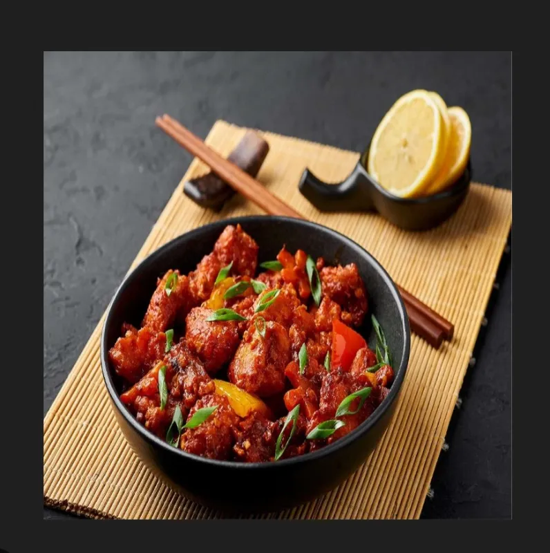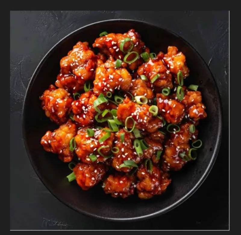 Tender chicken pieces in a savory Manchurian sauce.