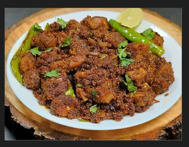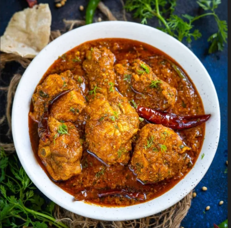 Chicken cooked in a spicy Kolhapuri style.