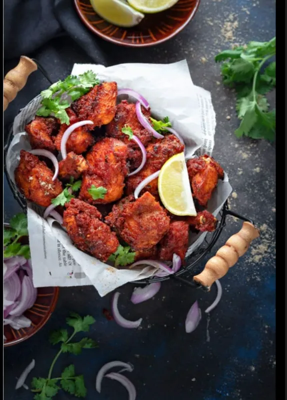Tandoori chicken pieces fried with aromatic oil.