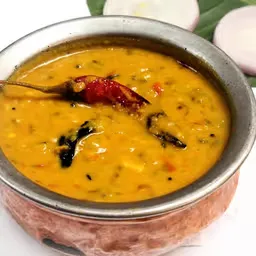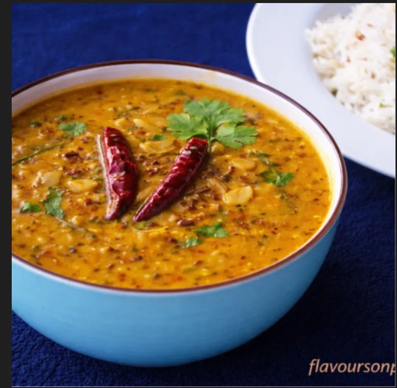 Lentils tempered with ghee and spices, flavorful.