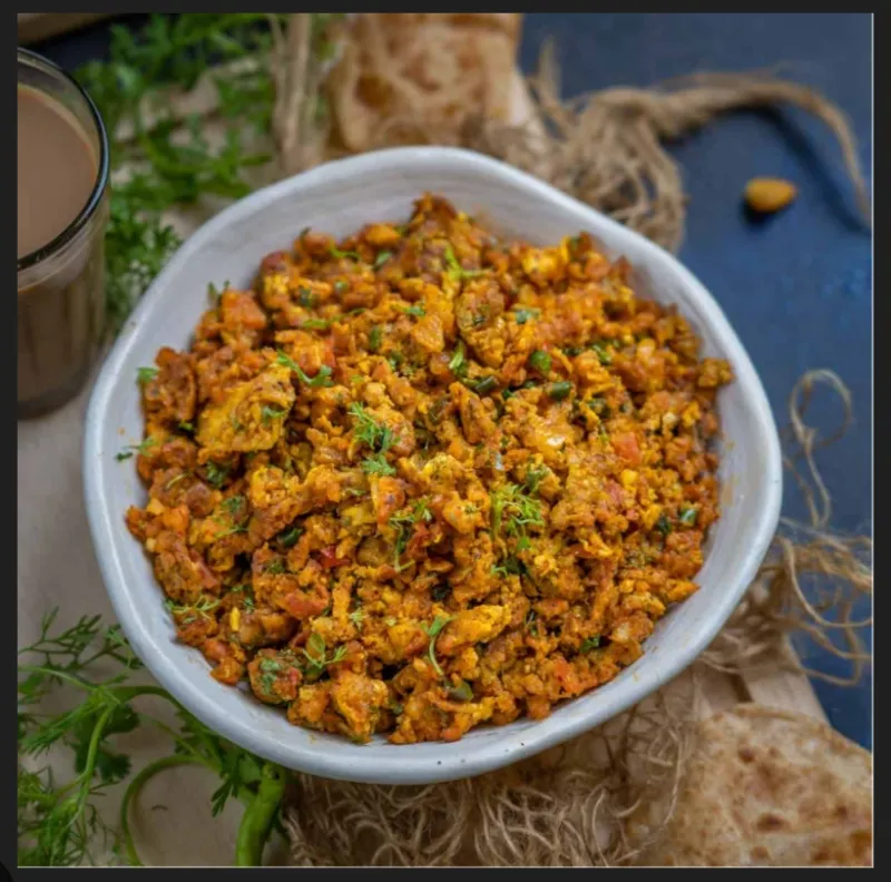 Scrambled eggs cooked with spices, a flavorful dish.