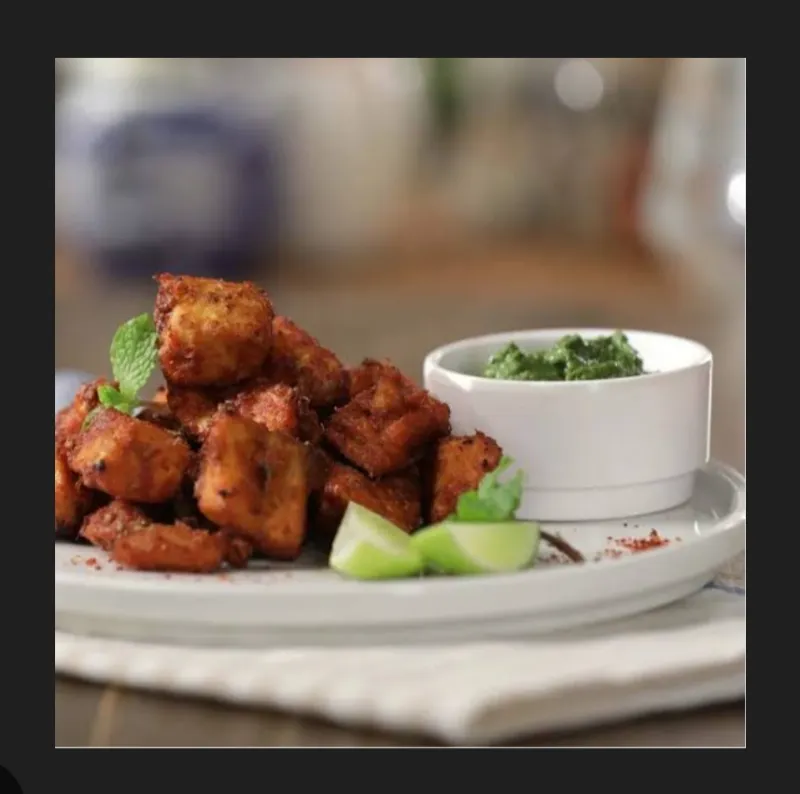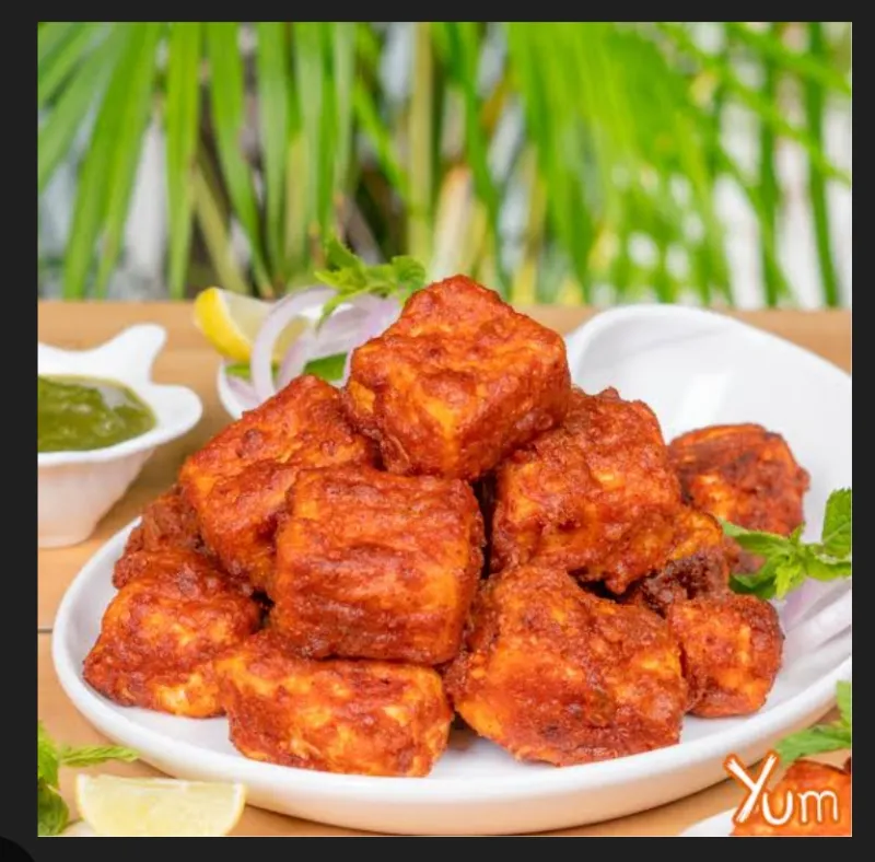 Delicious paneer cubes fried with a spicy Indian coating.