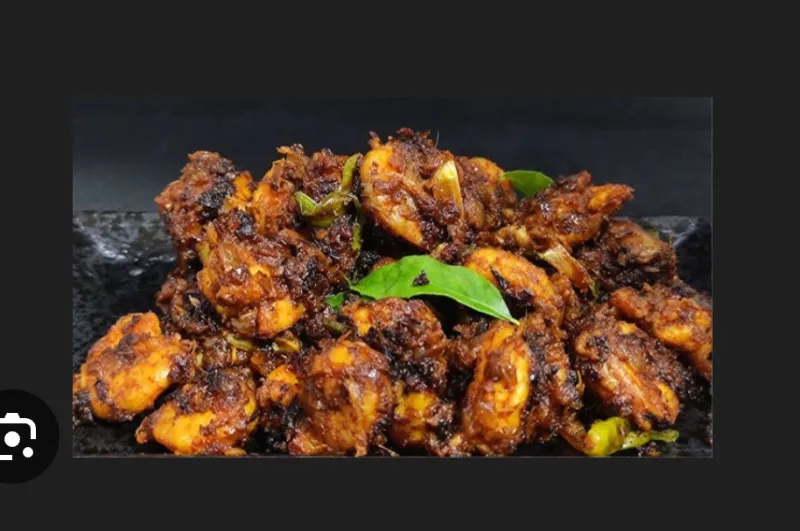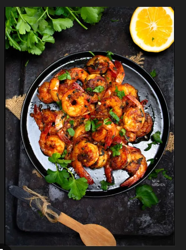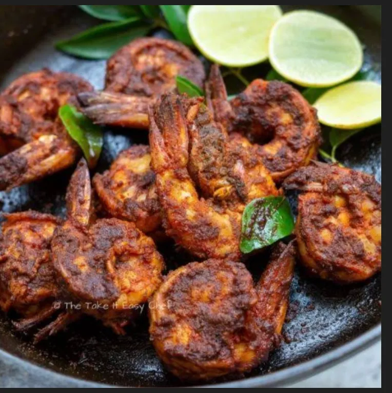 Prawns stir-fried with a flavorful masala.