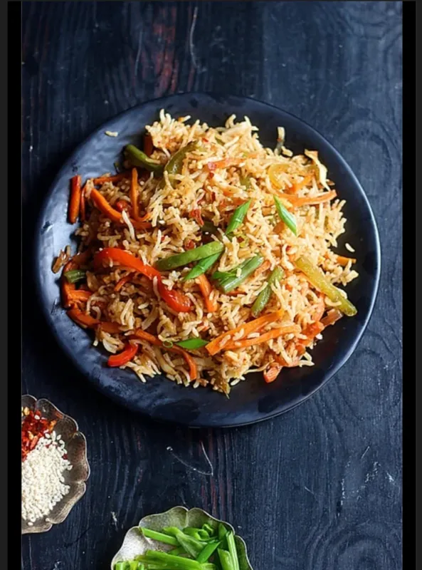 Aromatic rice cooked with fresh vegetables.