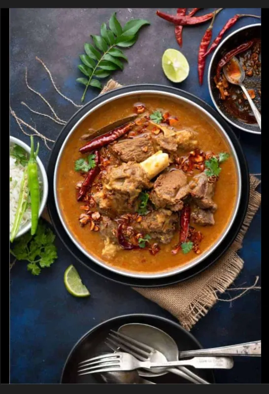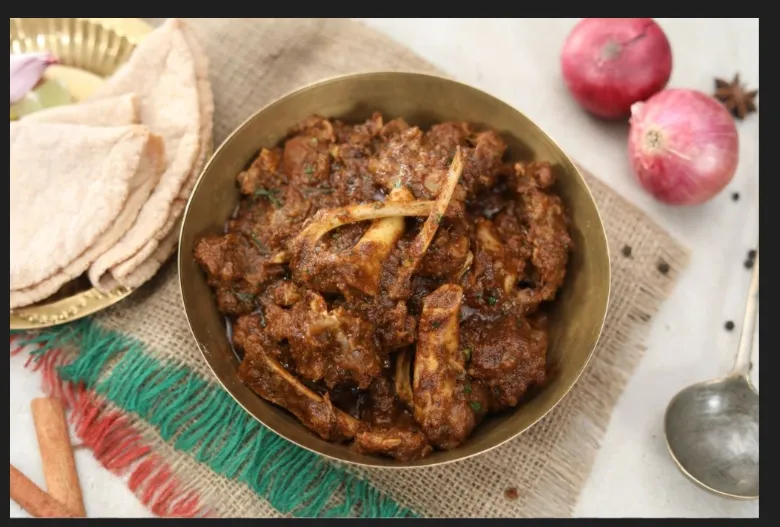 Spicy Kolhapuri style mutton curry, a regional favorite.