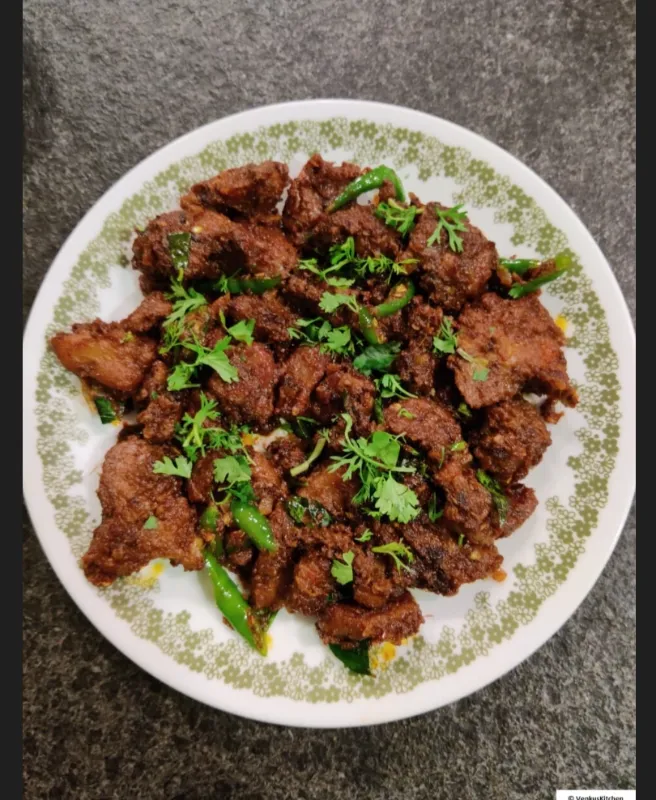 Mutton stir-fried with a flavorful masala mixture.