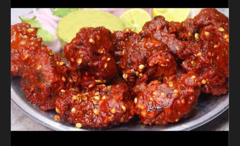 Spicy and tangy chicken pieces, a popular Indo-Chinese dish.