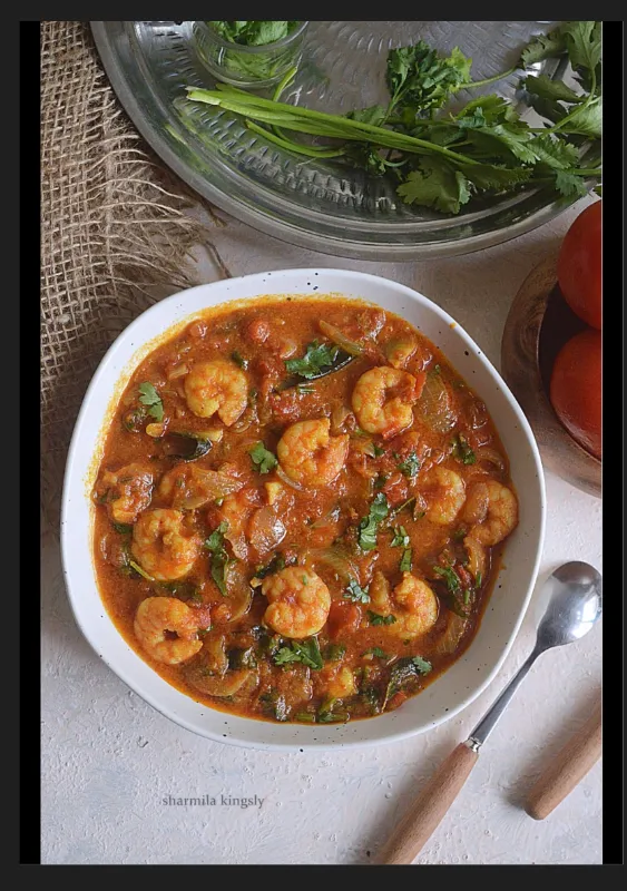 Prawns cooked in a rich and spicy masala gravy.
