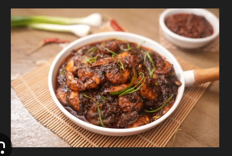 Juicy prawns in a tangy and spicy Manchurian sauce.