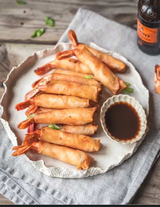 Delicate spring rolls filled with succulent prawns.