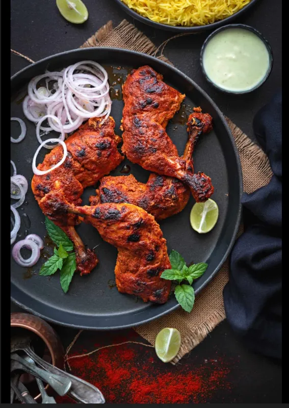 Whole tandoori chicken, marinated and grilled to perfection.