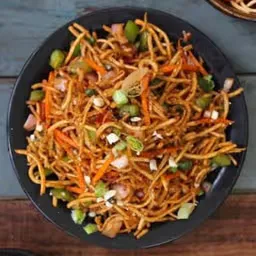 Hakka style noodles with chicken and vegetables.