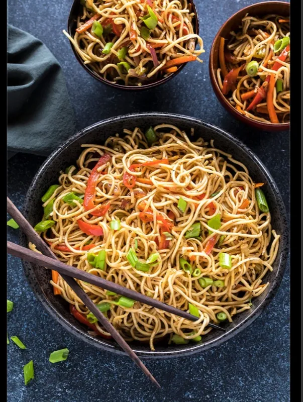 Hakka style noodles with fresh vegetables.