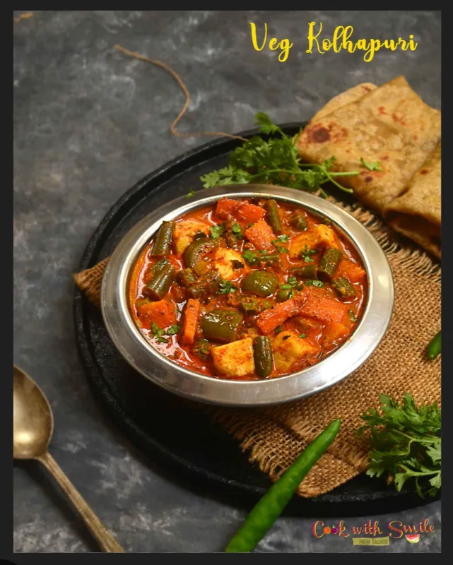 Mixed vegetables in a spicy Kolhapuri sauce.