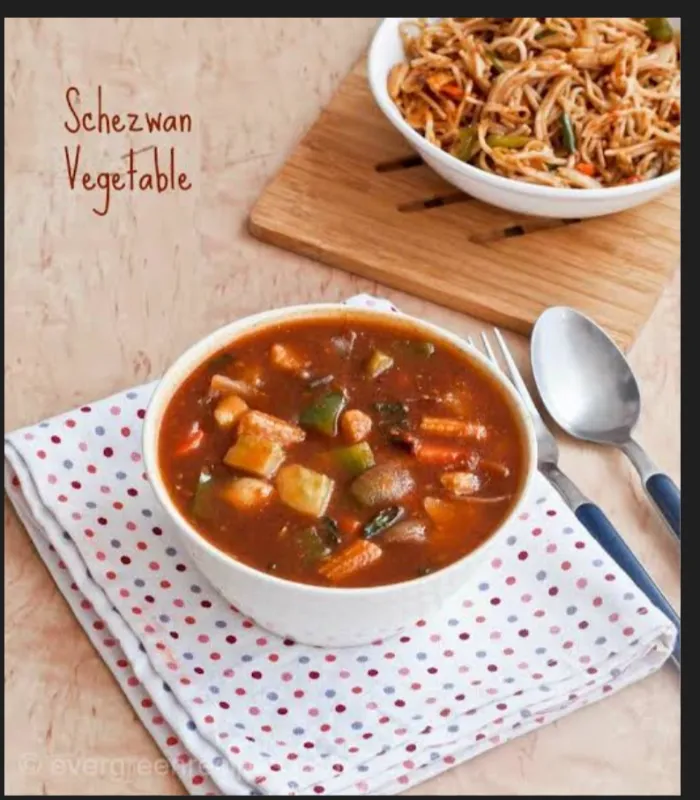 Mixed vegetables in a zesty and spicy Schezwan sauce.