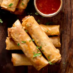 Crispy spring rolls loaded with fresh, mixed vegetables.